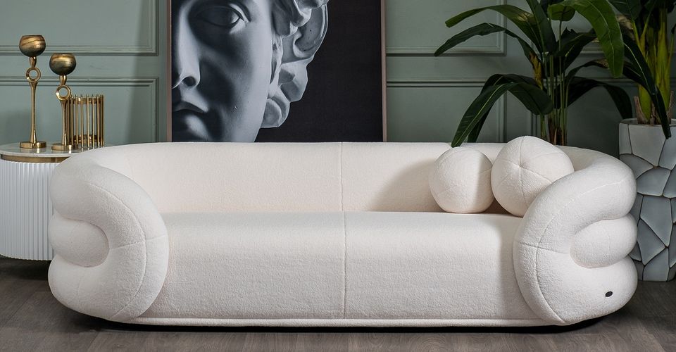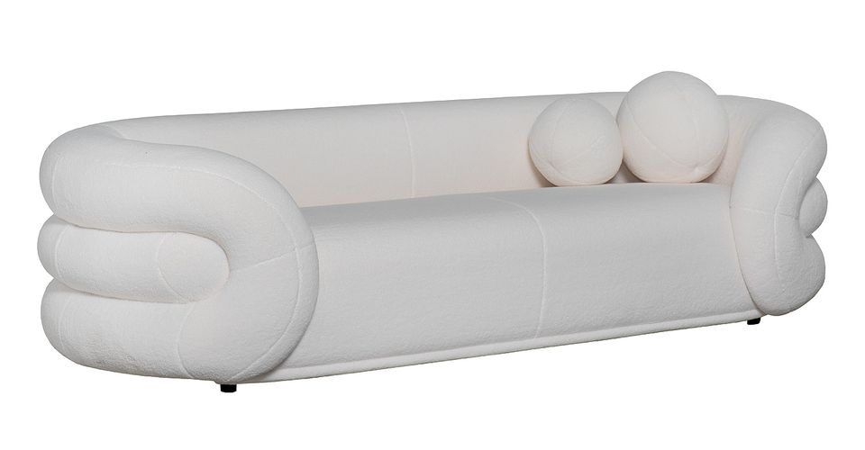 Двухместный диван в обивке букле, цвет «Milk»- сочетание современного дизайна и комфорта.