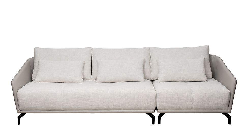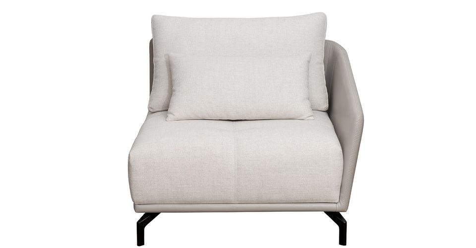 Стильный сборный диван из модулей решает сразу несколько задач в интерьере: обеспечивает комфорт, зонирует пространство, позволяет периодически обновлять обстановку. Модульные диваны для гостиной отличаются гибкостью и вариативностью в плане мебельной компоновки. Это прекрасное решение для квартиры-студии, просторной лаунж-зоны, загородного дома. Благодаря мягким подушкам бежевый диван из рогожки обеспечивает комфортное положение спины во время отдыха. Черные металлические опоры являются акцентом и подчеркивают элегантность светлой обивки. Комплект №1 модульного дивана в состав комплекта входит: Модуль двухместный с левым подлокотником - 1шт в тканях иск. кожа Magic 19 + рогожка Melange 100, Модуль кресельный с правым подлокотником - 1шт в тканях и иск. кожа Magic 19 + рогожка Melange 100. Опоры металл-цвет черный.