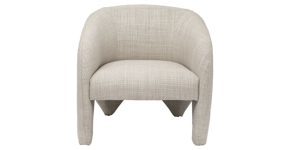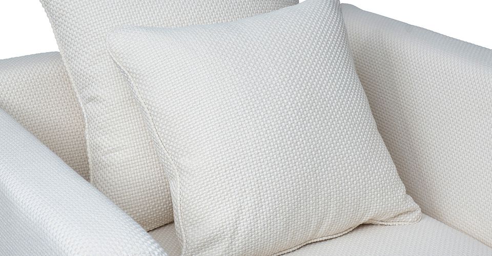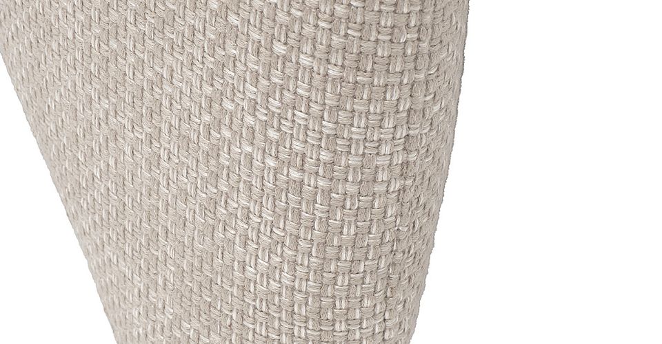 Дизайнерское кресло с архитектурным контуром строгое на вид, в то же время обивка, напоминающая холст крупного плетения с отчетливо выделяющимися клетками, привносит фактурность и рустикальность. Льняно-белый цвет актуален, отсылает к традициям и истокам в новом прочтении.