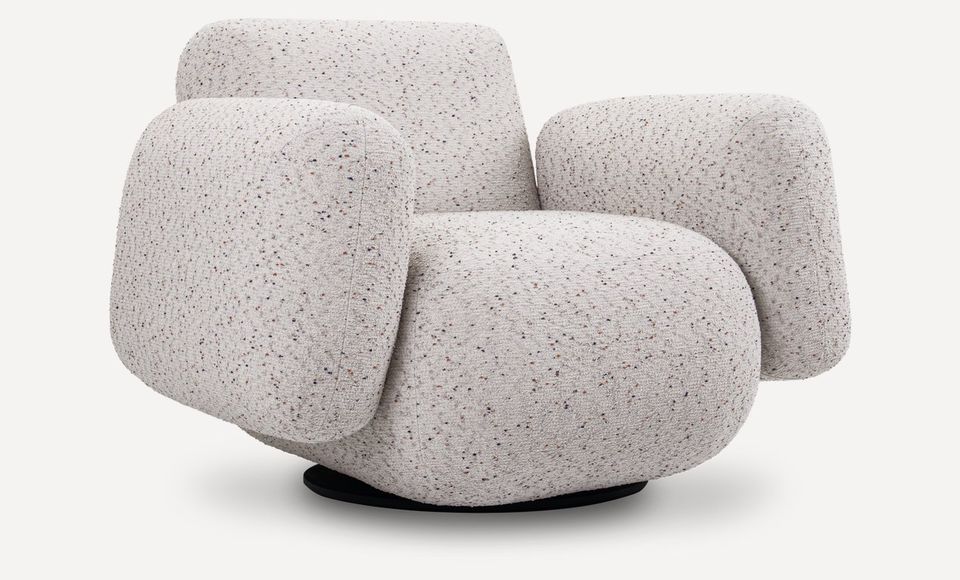 Оригинальное вращающееся кресло с плавной округлой формой станет любимым местом отдыха и релаксации в вашем доме. Обивка выполнена из плотной мебельной ткани шенилл серого цвета, который будет гармонично смотреться в современном интерьере. Мягкое сиденье без острых углов повторяет контуры тела и гарантирует максимальный комфорт. Лаконичный дизайн, нейтральный серый цвет и высокое качество материалов делают это кресло универсальным предметом мебели, который органично впишется в гостиную, спальню или кабинет. Под заказ данную модель можно изготовить в любом другом варианте ткани. В стандартном исполнении кресло выполнено в ткани из коллекции шенилл SEPPIA SER.