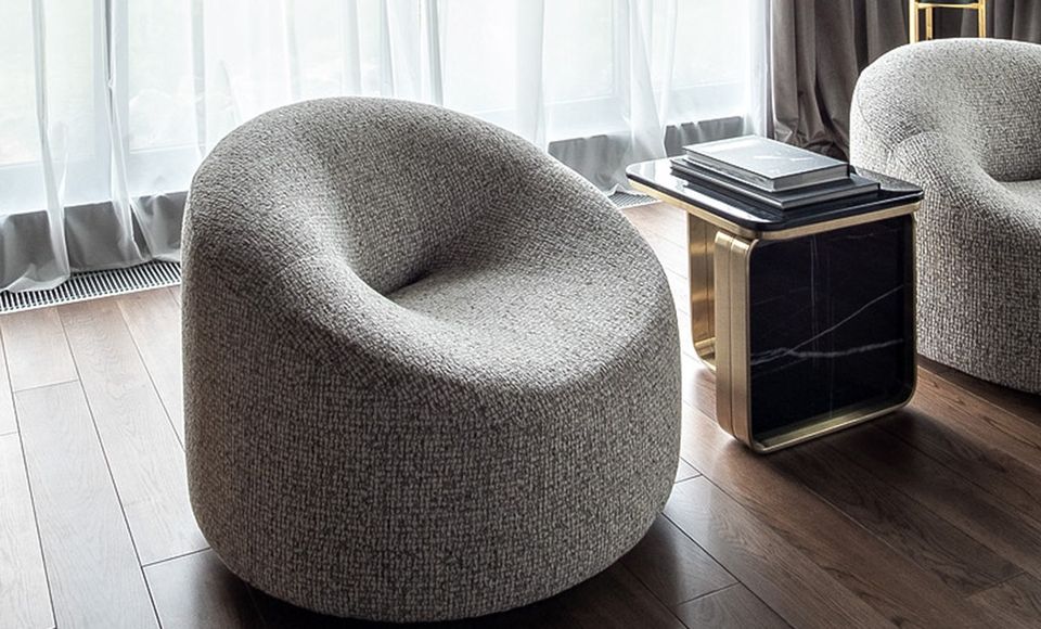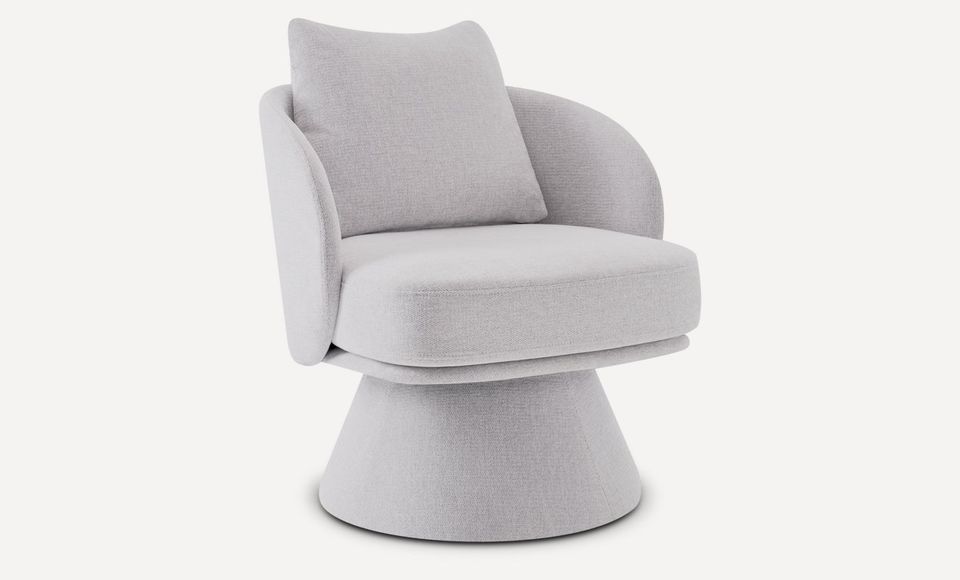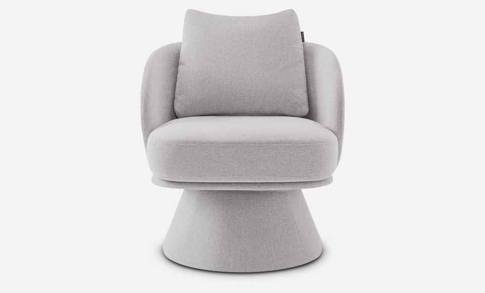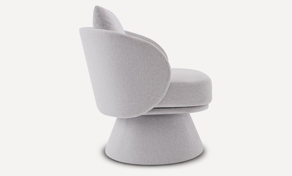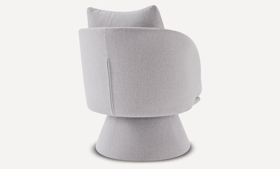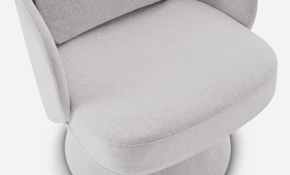 Оригинальное вращающееся кресло с плавной округлой формой станет любимым местом отдыха и релаксации в вашем доме. Обивка выполнена из плотной мебельной ткани шенилл серого цвета, который будет гармонично смотреться в современном интерьере. Мягкое сиденье без острых углов повторяет контуры тела и гарантирует максимальный комфорт. Лаконичный дизайн, нейтральный серый цвет и высокое качество материалов делают это кресло универсальным предметом мебели, который органично впишется в гостиную, спальню или кабинет. Под заказ данную модель можно изготовить в любом другом варианте ткани. В стандартном исполнении кресло выполнено в ткани из коллекции шенилл SEPPIA SER.