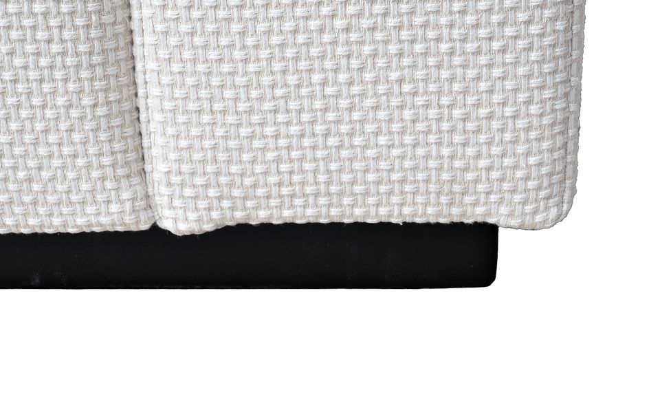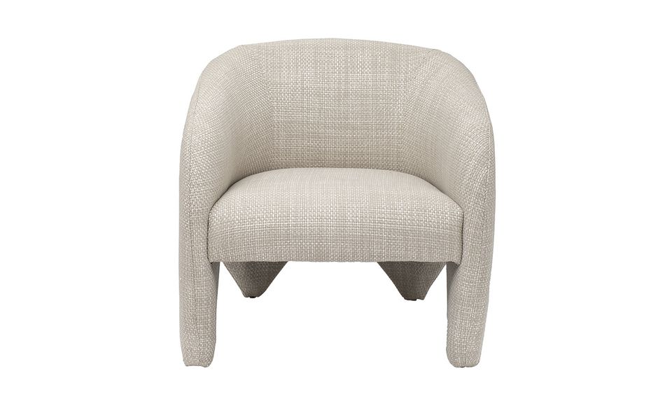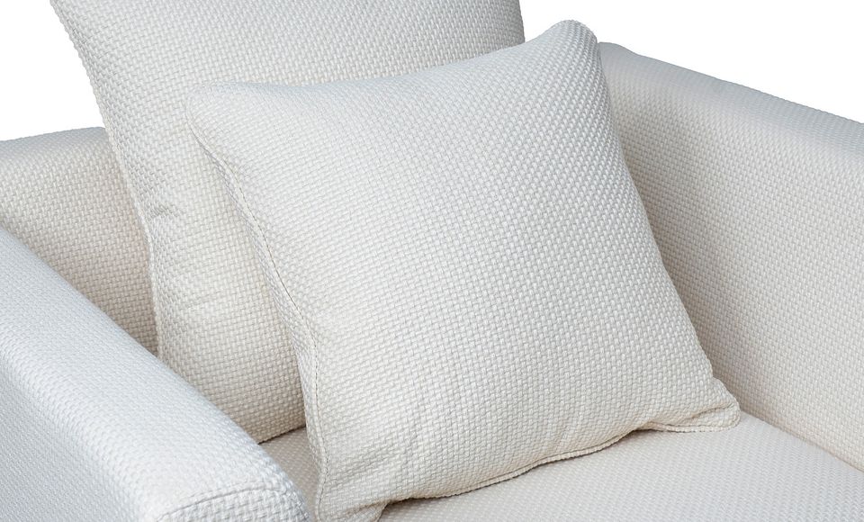 Дизайнерское кресло с архитектурным контуром строгое на вид, в то же время обивка, напоминающая холст крупного плетения с отчетливо выделяющимися клетками, привносит фактурность и рустикальность. Льняно-белый цвет актуален, отсылает к традициям и истокам в новом прочтении.