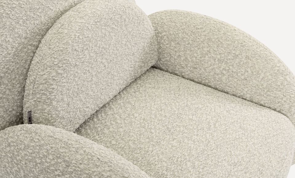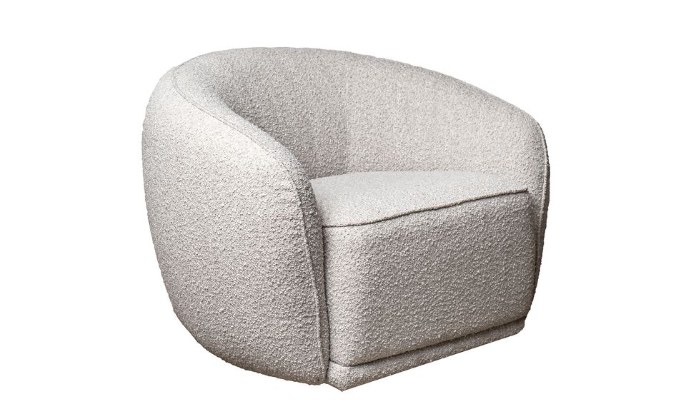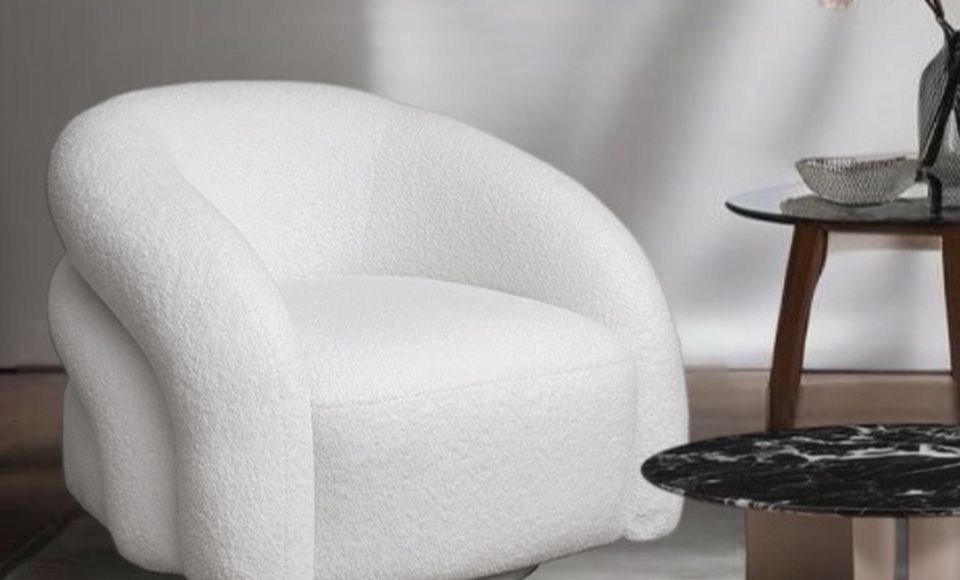 Мягкое кресло из букле в современном стиле — воплощение интерьерного тренда на тактильный комфорт и округлые формы. Его скульптурный силуэт словно создан для отдыха: глубокая посадка, обволакивающие линии и приятная на ощупь текстура ткани. Золотое основание добавляет изысканности, подчёркивая статус дизайнерского кресла для интерьера. Идеально впишется в минималистичный или современный интерьер, станет акцентом в гостиной, спальне или лаунж-зоне, где ценят эстетику и комфорт.