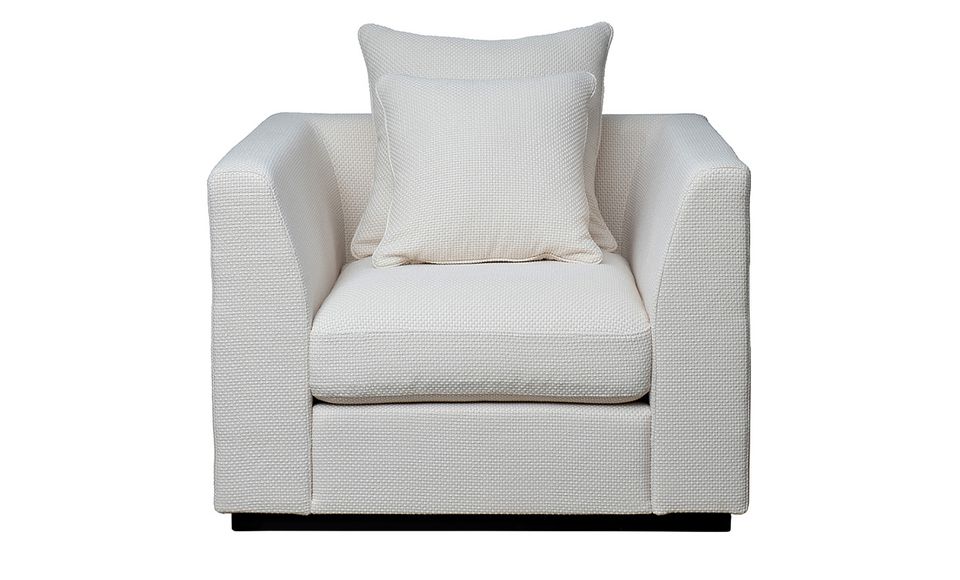 Необыкновенно стильное кресло, обитое плотной тканью рогожка кремового цвета, станет украшением гостиной, спальни или кабинета, оформленного в современном стиле. Плавные линии подлокотников, глубокое сиденье, мягкие подушки создают ощущение уюта и комфорта. Сдержанный дизайн кресла подчеркивает красоту фактуры мебельной ткани и благородство кремового оттенка. Кресло прекрасно сочетается с креслом в том же стиле, создавая гармоничное пространство для отдыха и релакса. В стандартном исполнении: обивка - рогожка BOTEGA SVBEG, цвет основания - 4.